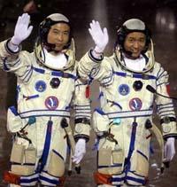 Just back from orbiting the earth, and a tour of some regions of outer space, are the Chinese taikonauts Fei Junlong and Nie Haisheng.
